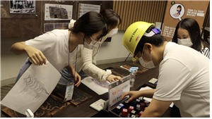 <태화강 동굴피아 안에서 열심히 색칠하는 태화강 서식생물>