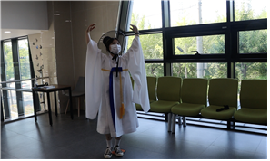 <울산의 학춤을 전수받고 있는 세즈코 팀원들. 옷까지 제대로다.>